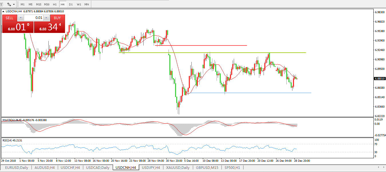 交易策略6.9200下,看跌,目标价位为6.8545,然后为 6.8242