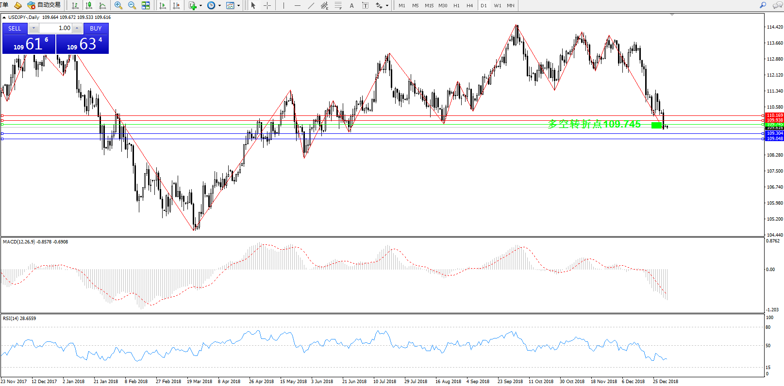 交易策略:109.745下方看跌,目标109.304、109.048