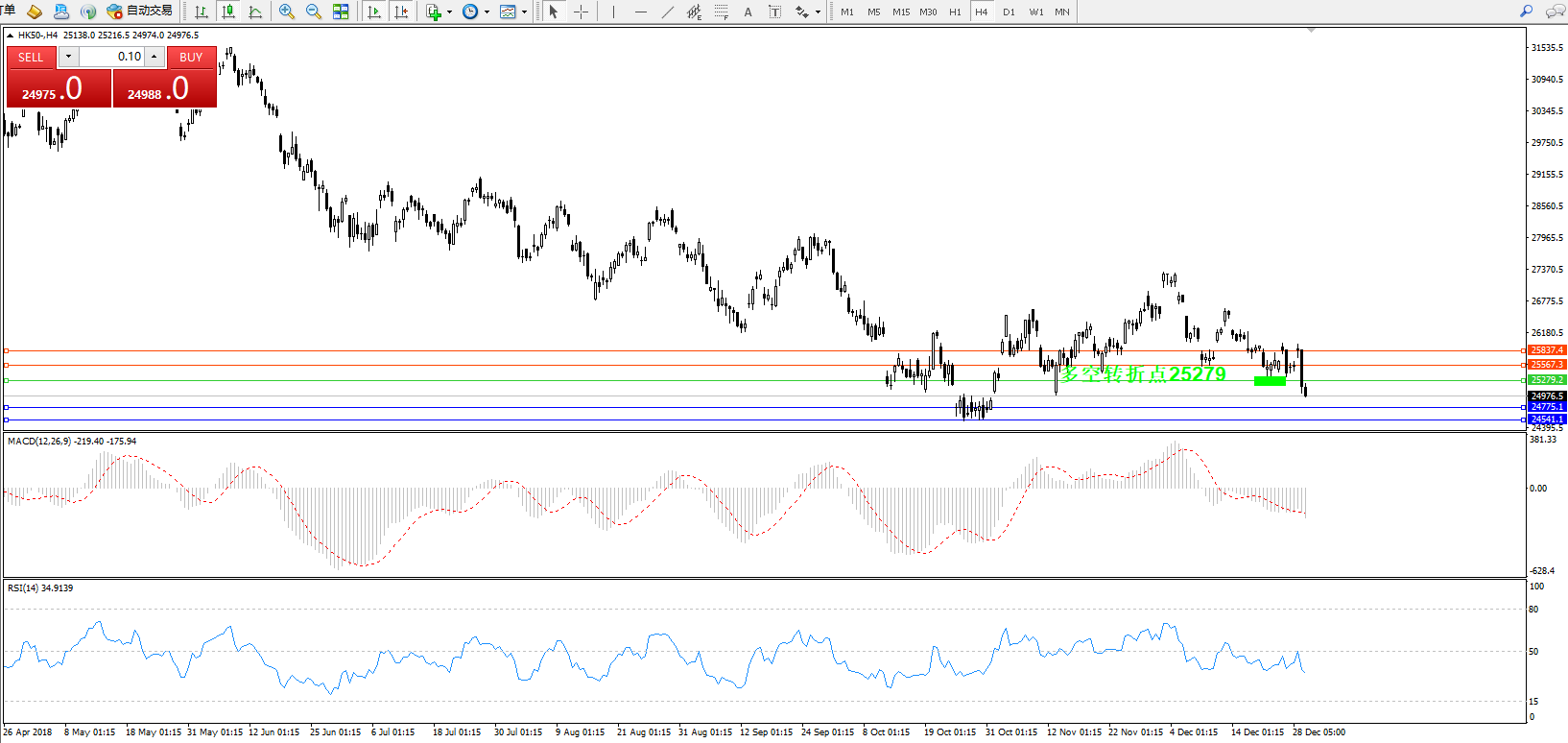2019年首个交易日,亚洲股市近全线收跌。股市全线低迷。恒指跌2.77%,创下1995年以来最差的开年日表现,报25130.35点。国企指数跌2.87%。蓝筹股近全线下挫,内房股集体重挫,融创中国跌超9%,中国恒大跌逾7%。科技股疲软,美团点评跌超6%续创上市以来新低,小米集团跌超5%。