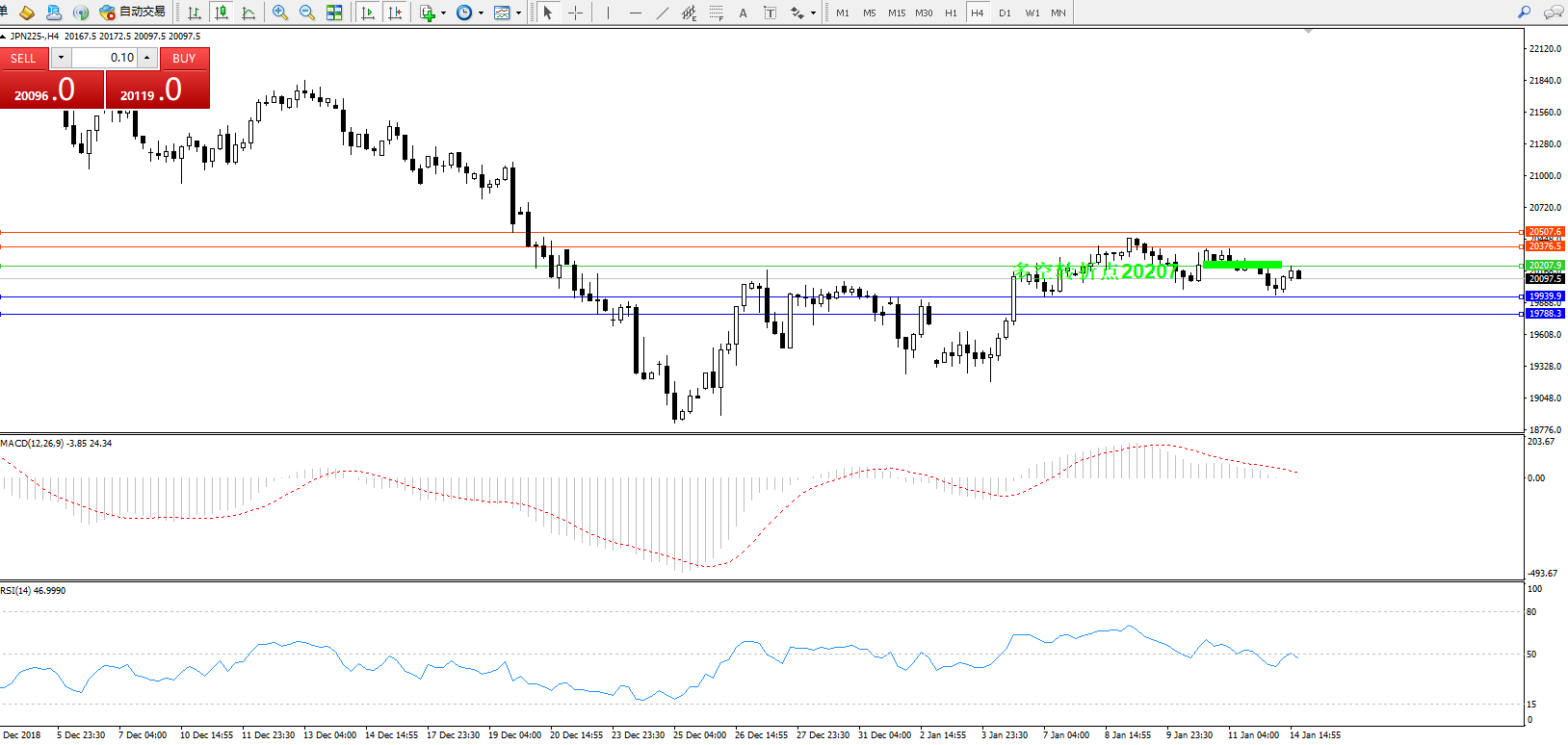 日经指数JPN225——4小时K线图: