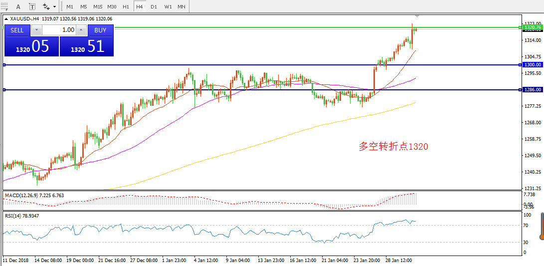 交易策略:在1320.00之上看涨,目标1330.00  1345.00