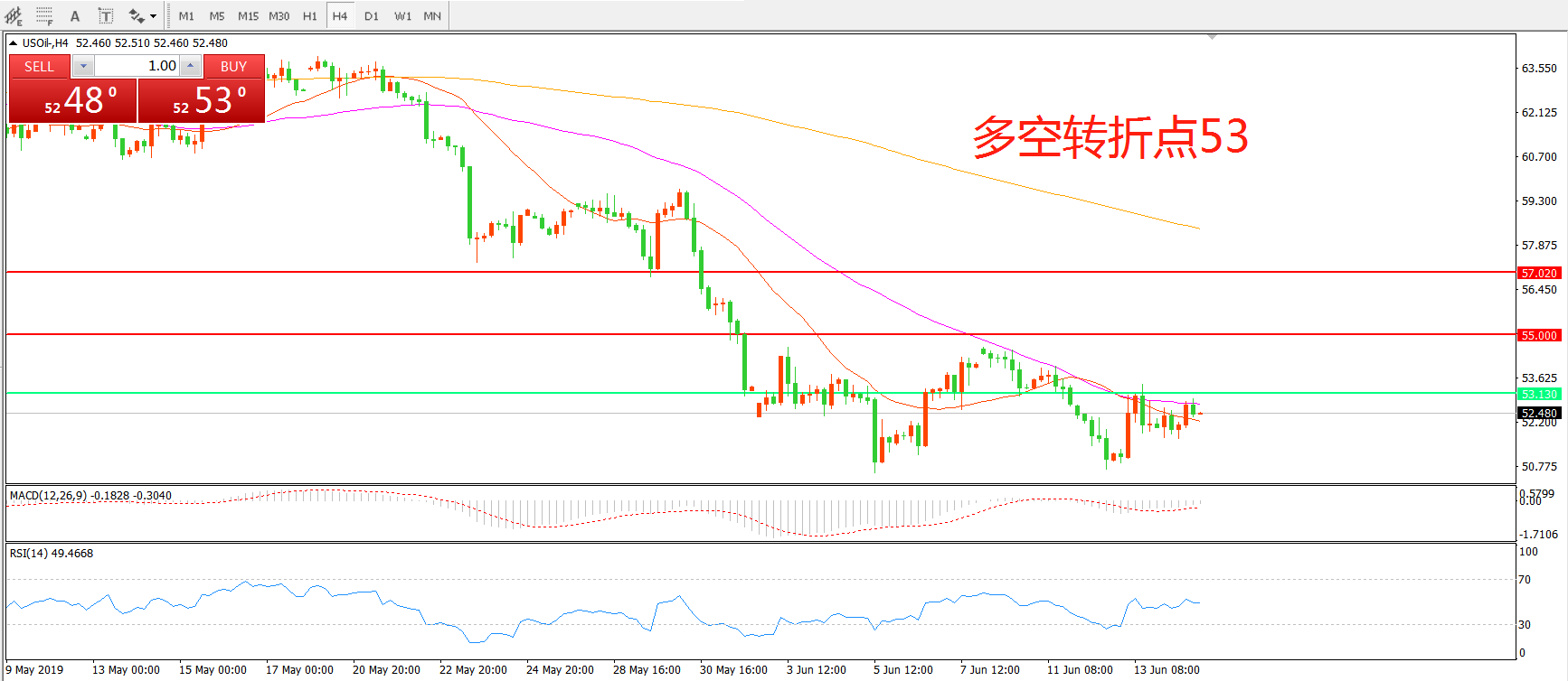 交易策略:在53.00之下看跌,目标50.00 46.00
