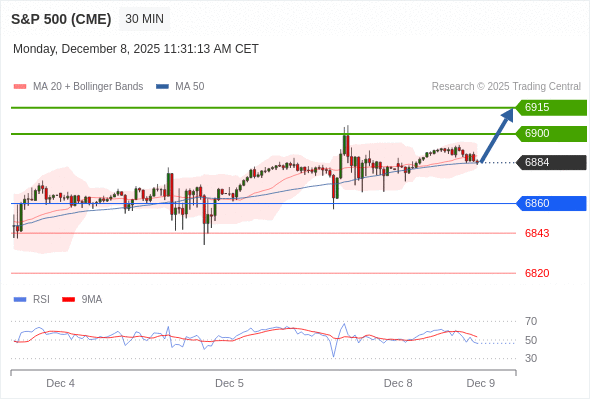 在 6860 之上,看涨,目标价位为 6900 ,然后为 6915 。