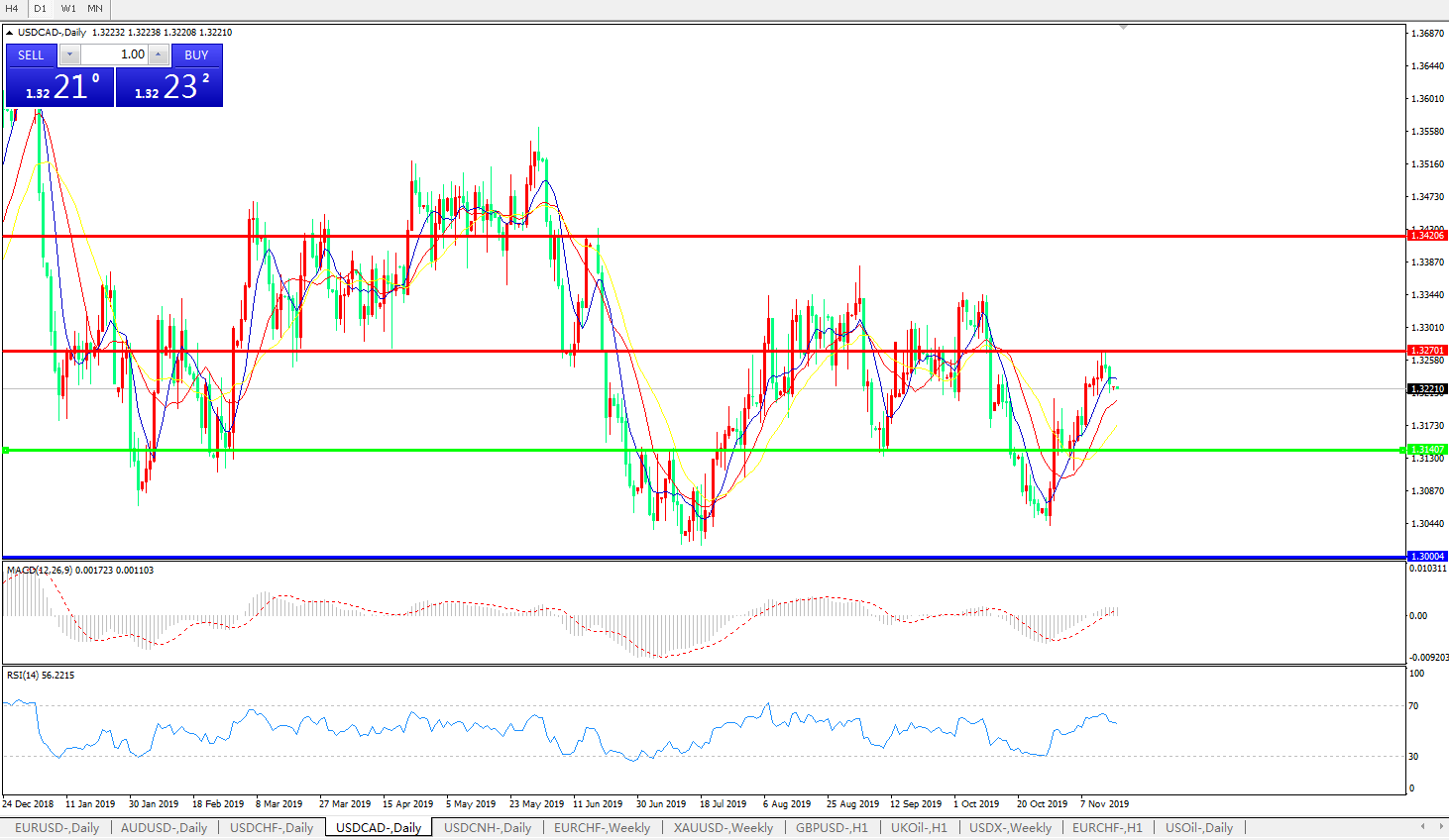 美元兑加元USDCAD 日线图: