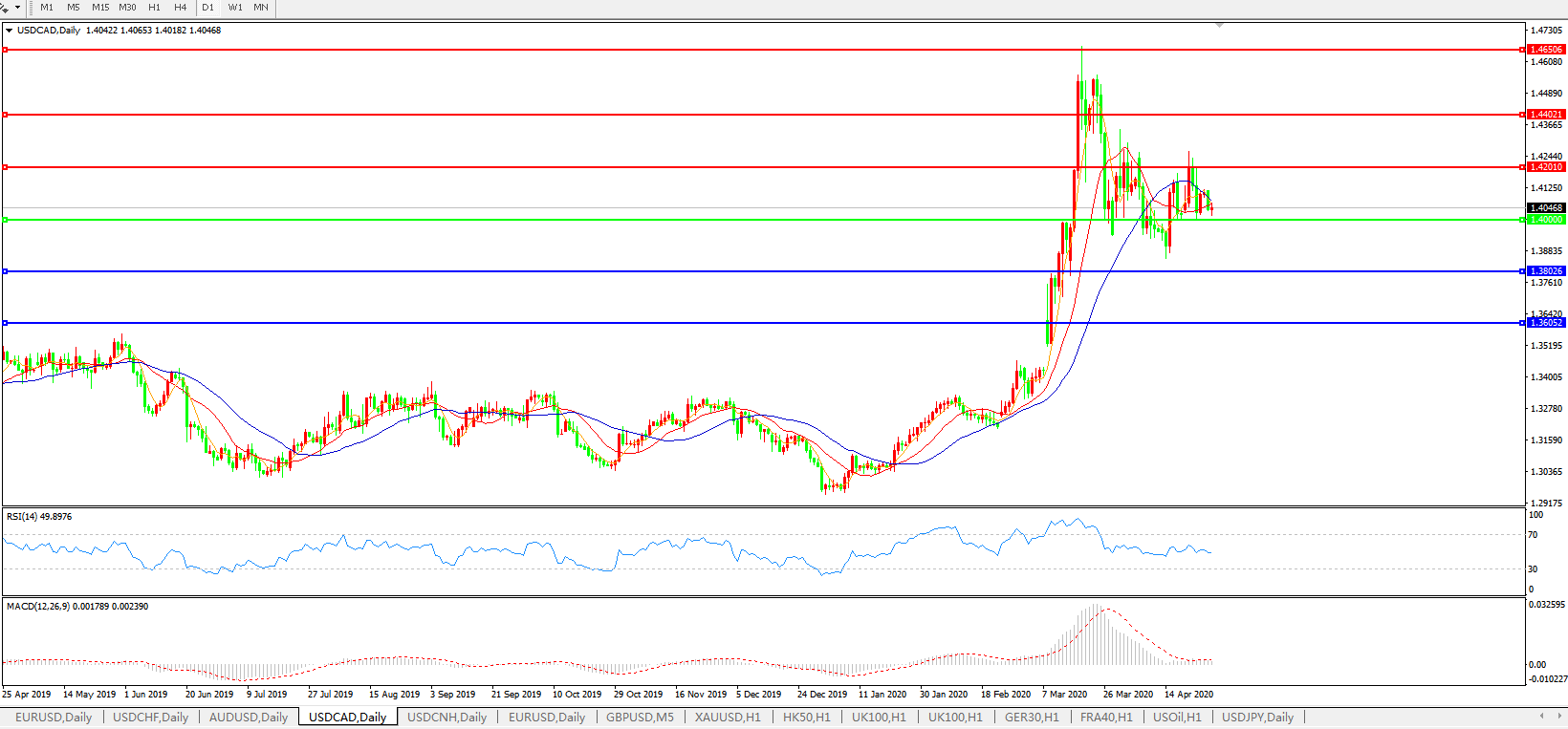 美元兑加元USDCAD    日线图: