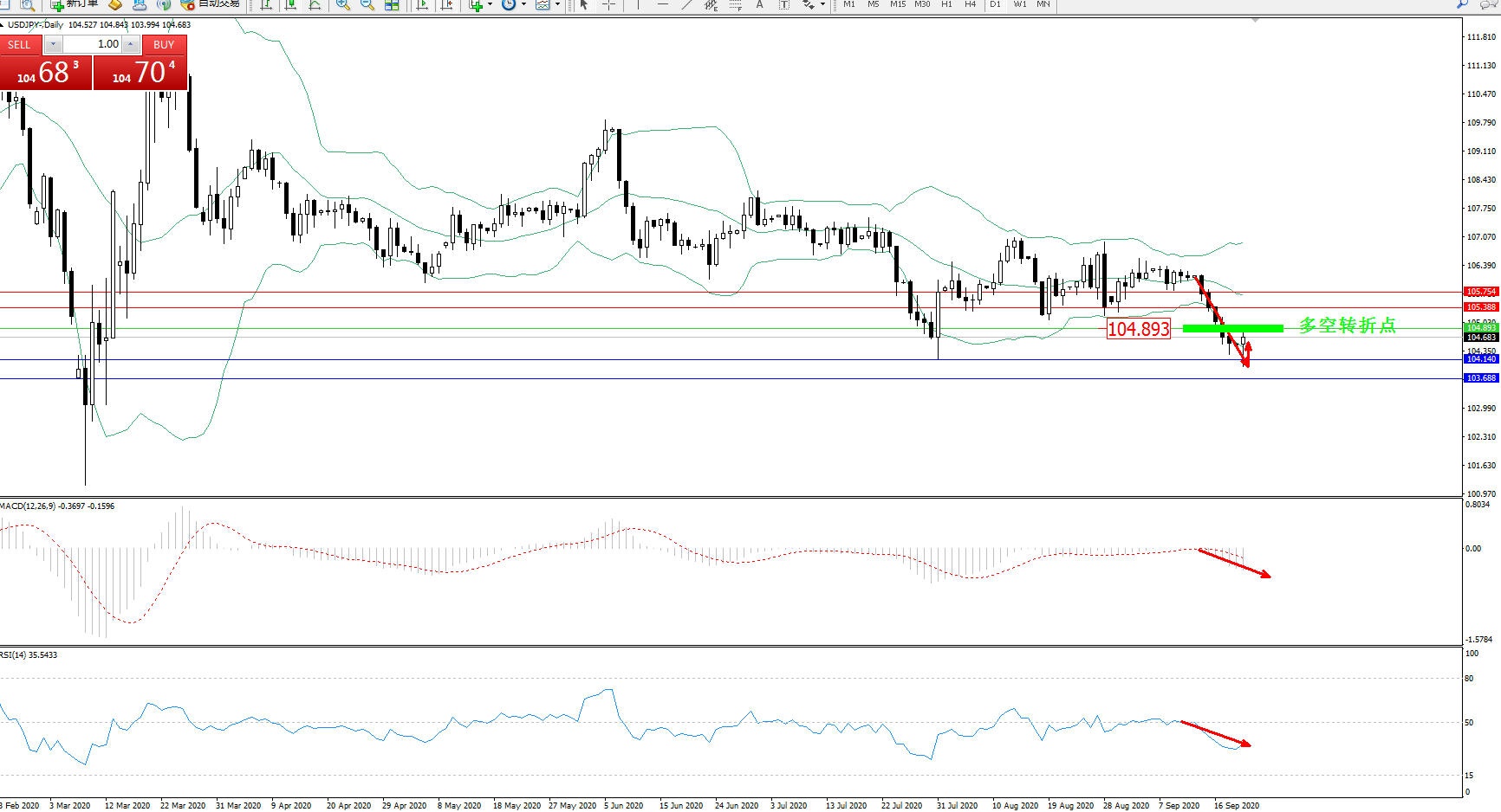 交易策略:104.893下方看跌,目标104.140、103.688