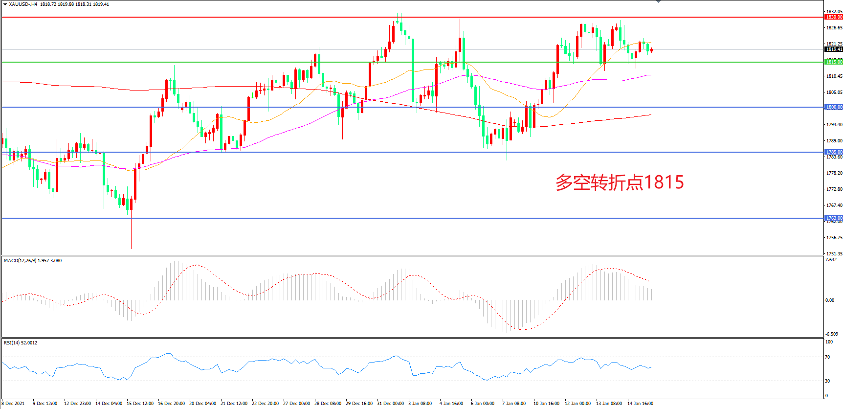 交易策略:在1815.00之上看涨,目标1830.00       1845.00