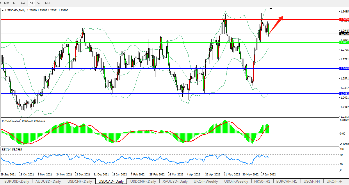 美元兑加元USDCAD 日线图: