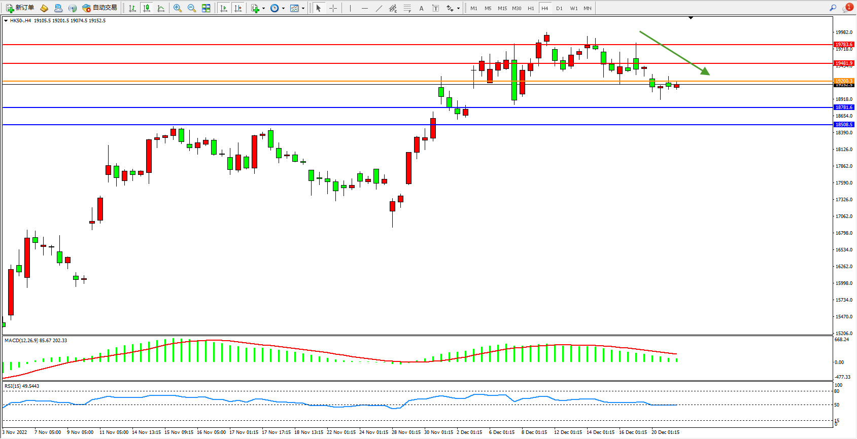 恒指HK50 4小时图