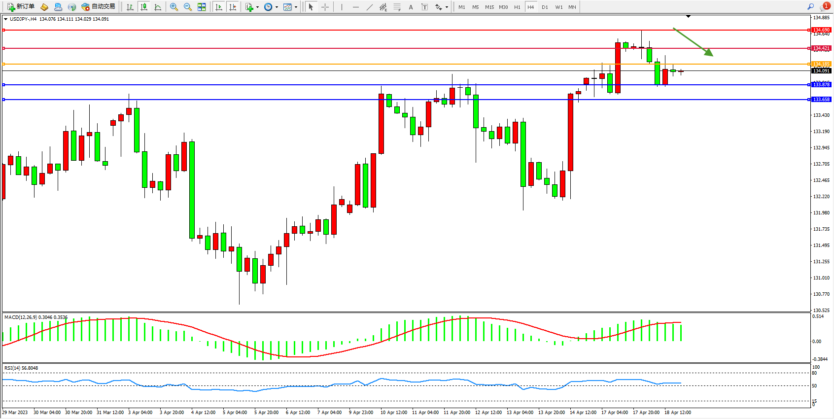 交易策略:134.185下方看跌,目标133.878 133.658