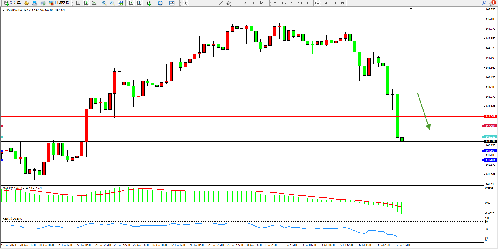 阻力位:142.484  142.706